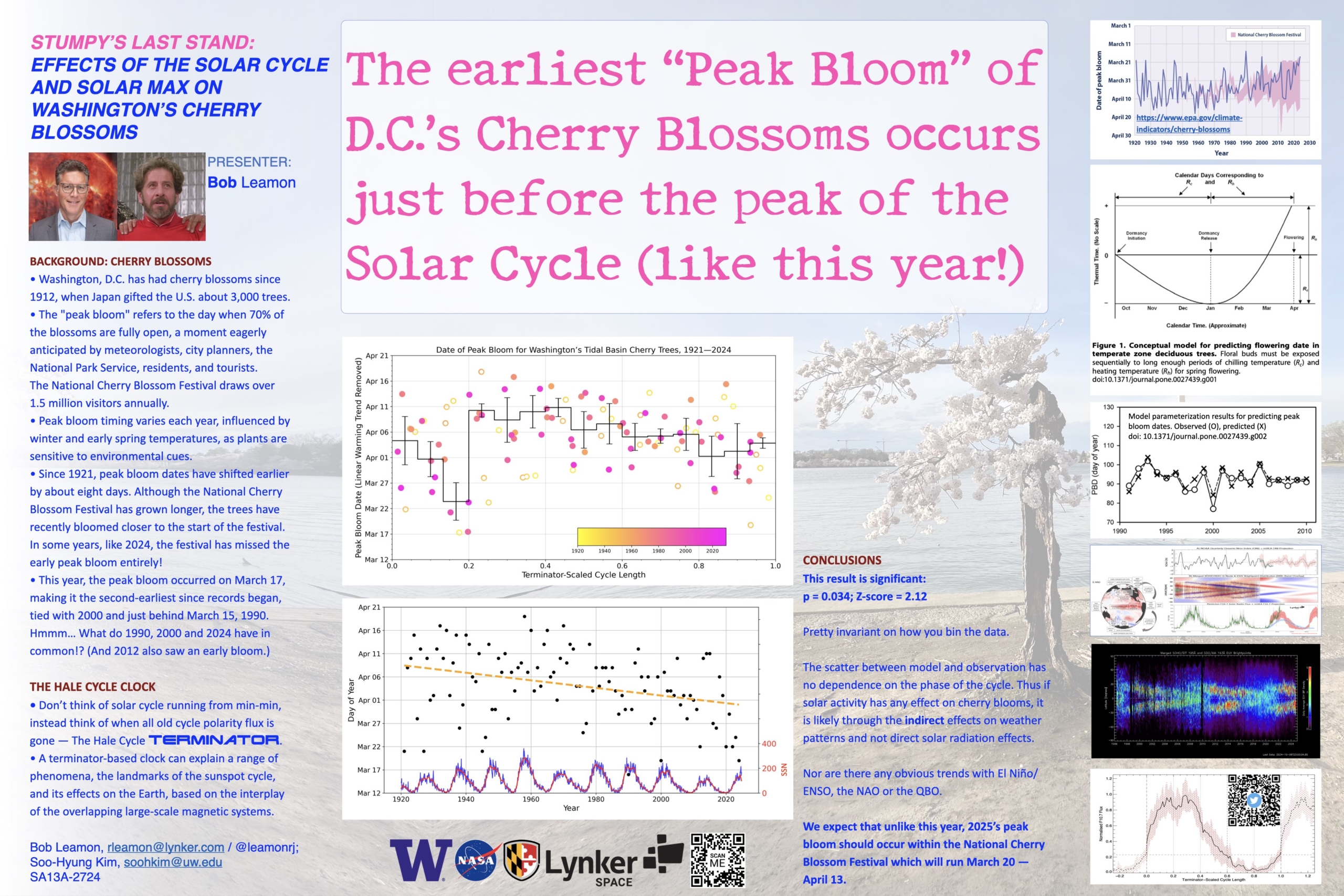 Having been a resident of DC since 2004, I can vouch for the fluctuations in winter severity and temperatures throughout the solar activity cycle. And it was fun to present work about my adopted hometown and its iconic blooms at December’s American Geophysical Union conference here in Washington.